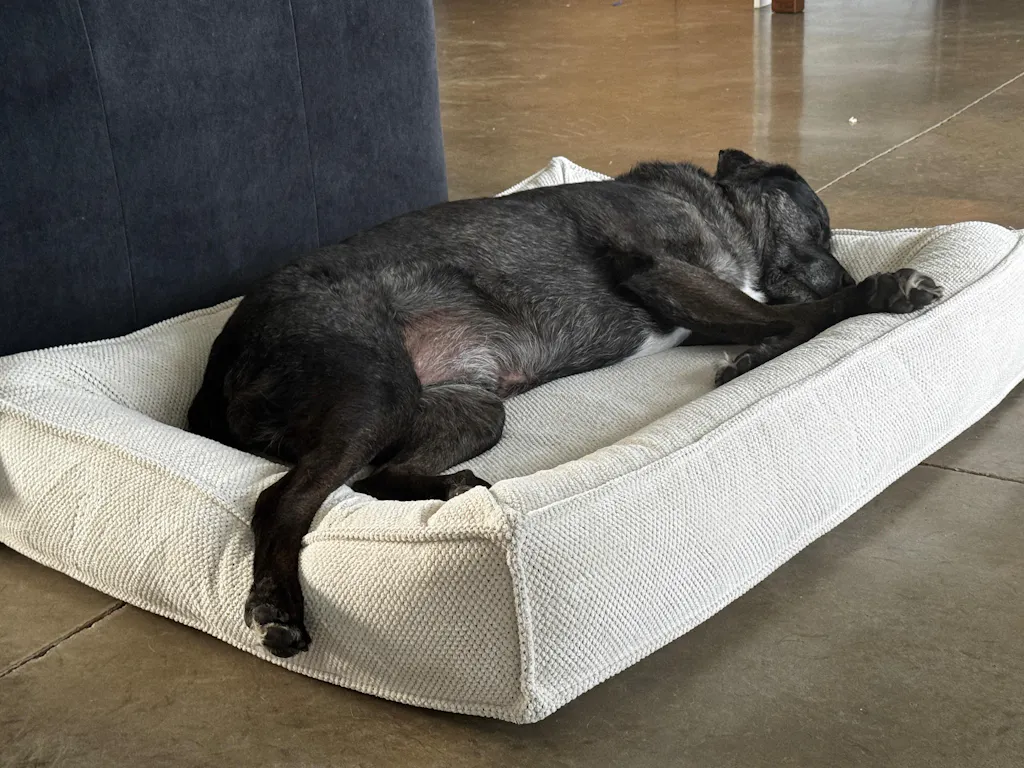 "I couldn't be happier with this orthopedic dog bed! The upholstery quality is top-notch, and my dog sleeps soundly every night."