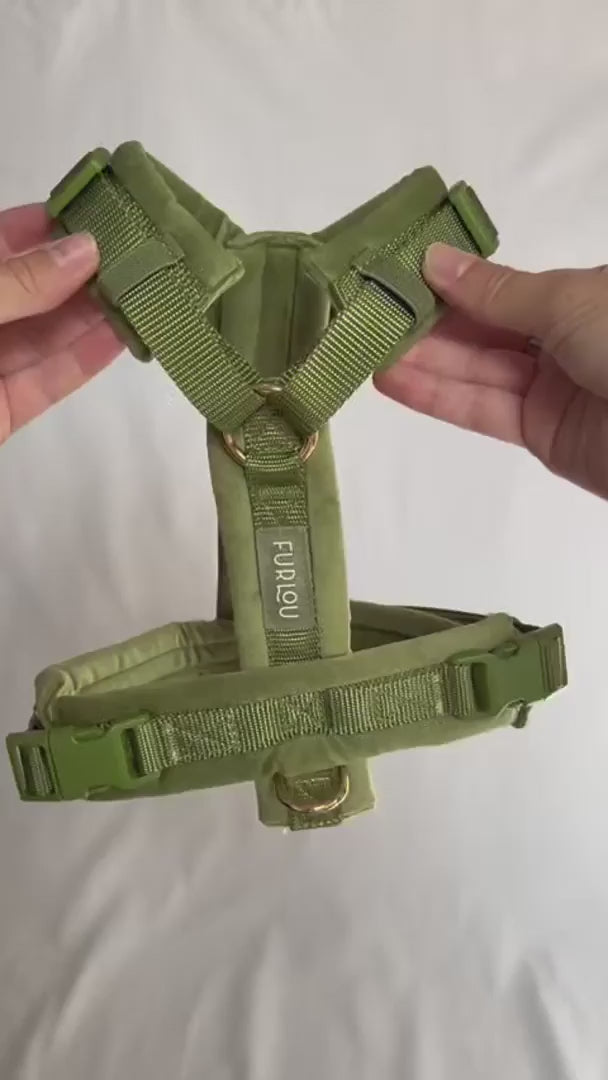 This harness is all about giving your dog that just-right fit with the comfort they deserve. Padded with breathable fabric and adjustable in four places, it wraps gently without restricting movement. The Y-shape keeps pressure off the neck, and the gold hardware adds a little glam to every walk.